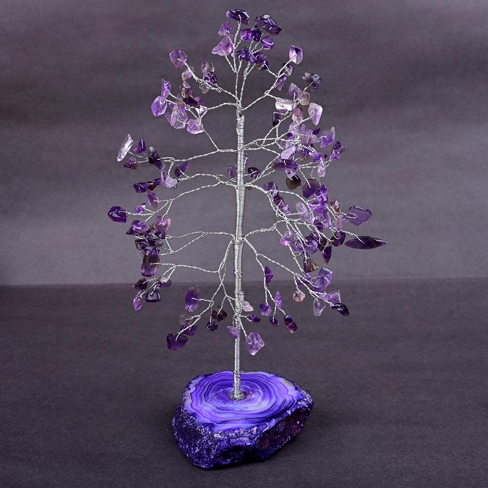Elegant tree made of uncut Amethyst gemstones and Agate gemstone base is set to add an elegant accent to décor. With charming purple hue, the tree makes a beautiful show piece to uplift the energies of the aura. Its cleansing energies protects the surrounding from negative influences and promotes spiritual energies of planet Saturn. It is ideal to place in North-East corner of the dwelling or office to enhance spirit element.