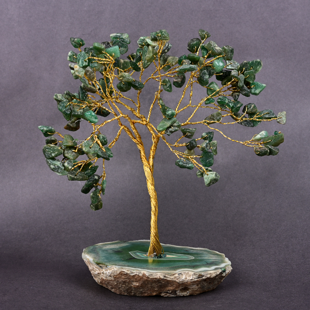 This delicately yet sturdily handcrafted tree is made using natural uncut Green Jade gems with Agate gemstone base. With sparkle of green it would add nature inspired touch to your space while resonating the energies of the gemstone. It promotes nurturing and healing energies of planet Mercury. It is best placed in in North-West corner of home or office for enhancing the Air element.