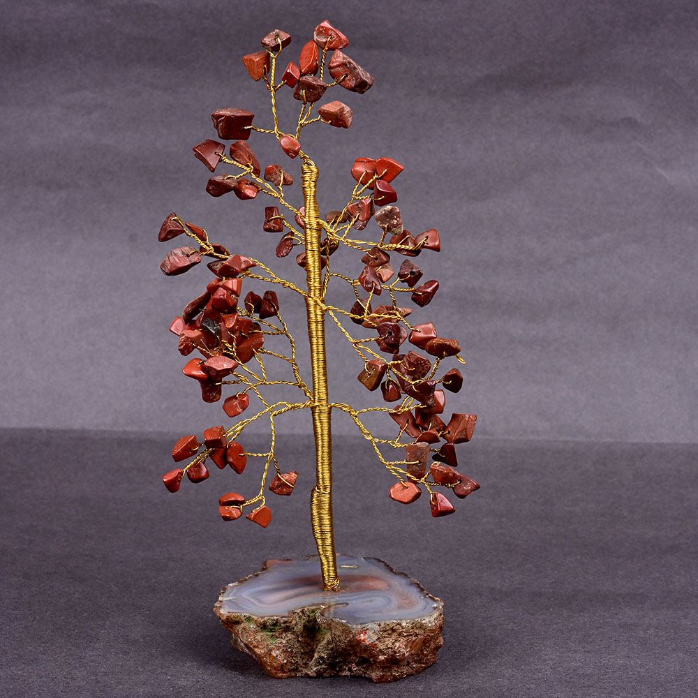 Handcrafted tree made of natural uncut Red Jasper gemstones and Agate gemstone base to increase the connection with Mother Earth. With earthy hue of Jasper gems, the tree is bound to add a nature inspired beauty to your décor. It enhances stability and by promoting nurturing energies of planet Mars. When placed in South corner of home/office it enhances the energies of Earth element.
