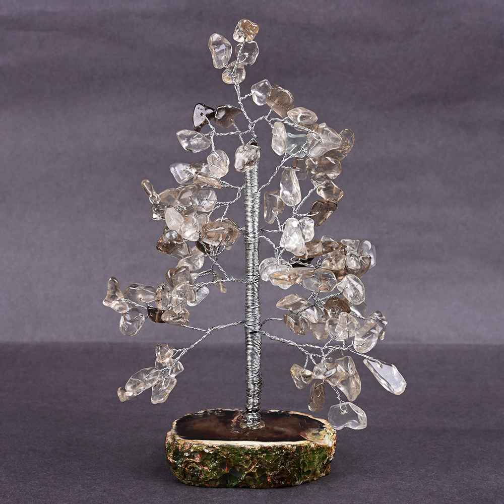 This beautifully handcrafted with diligence using natural uncut Smoky Quartz gems with Agate gemstone base to beautify your décor and fill it with positive energies. Fashioned from Smoky Quartz, it transmutes negative energies and resonates grounding and protective qualities planet Saturn. It is best placed in West corner of the dwelling or office to enhance the energies of water element.