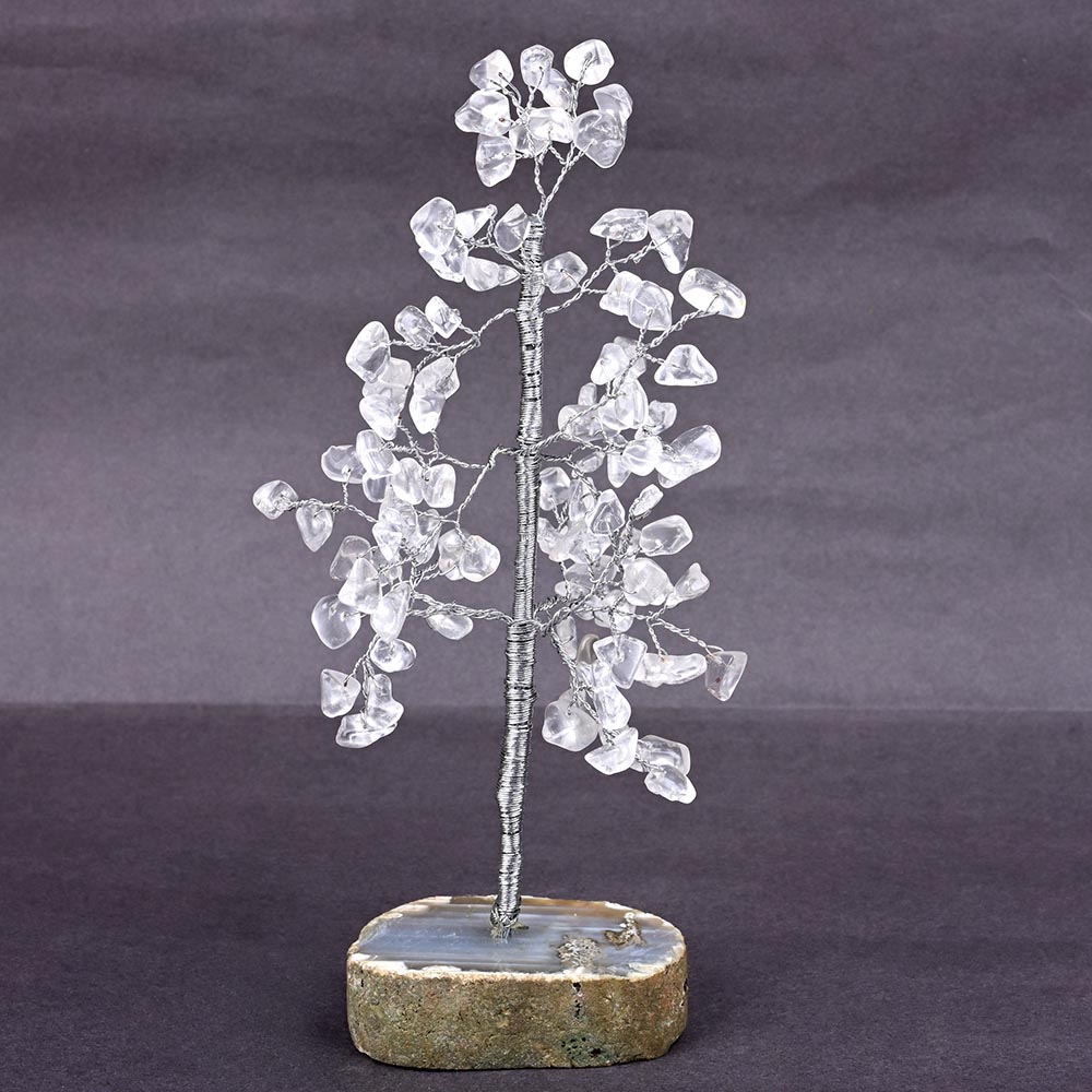 This gemstone tree handcrafted using natural uncut White crystal gems with Agate gemstone base will add a charming touch to your décor with its clear radiance. With energies of while crystals, this tree blossoms cleansing and channelling energies planet Uranus. It is best placed in North-East corner of the dwelling and office to enhance the energies of Ether element.