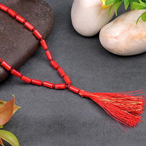 Collection of Coral Mala made using natural coral gemstones strung in thread and silver/gold. It is associated with Mangal planet and is a favorite of devotees of Lord Hanuman and Ganesh. A Coral Mala can be used for both Japa and wearing purpose. Coral Mala is generally recommended to devotees having a weak Planet Mars or Mangal in their Horoscope. The coral gemstone blesses the user with good health, strength, stability and support. It also blesses with courage, confidence, perseverance and the strength to overcome odds and achieve success.